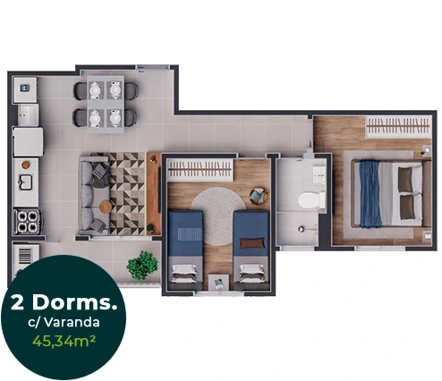 Escolha entre plantas versáteis no Paraside Village. As unidades de 2 dormitórios variam de 36m² a 45,34m², proporcionando opções ideais para diferentes necessidades. Encontre a configuração perfeita para sua nova vida em Mogi das Cruzes.